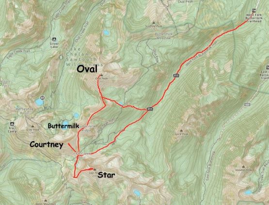 The Wish Slam contains three Bulgers in the Chelan area (Oval, Star and Courtney) and two additional peaks in the Washington’s Top 200 lists (Buttermilk, Gray). For those going after the prominence list Oval Peak is the only P600m objective in the area but those aiming at the Bulger List should spend at least 2 days to slam the three main peaks in the same trip. If the T200 list is ever going to be a goal then it’s advisable to do all five of them. For me, the goal was to simply bag as many peaks as possible. I’m never really a list-driven peak-bagger but I also hate to leave something behind and I especially do not like to repeat these arduous approaches, so the objective was to at least bag the three Bulgers over two days, and if time/energy permitted we would aim for all five of them. The approach trail that goes up the West Buttermilk Creek had been notorious with blowdowns but Matt J. had been there recently and reported evidence of recent maintenance, so I was keen to take advantage of the beta.