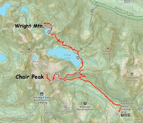 Chair Peak via the scramble route, and Wright Mtn. hiking route. GPX DL
