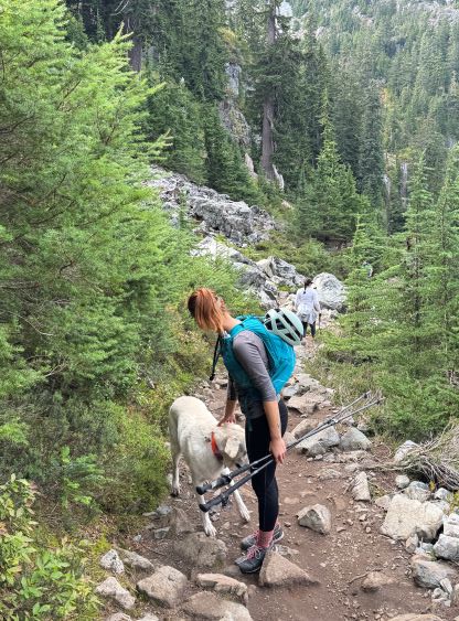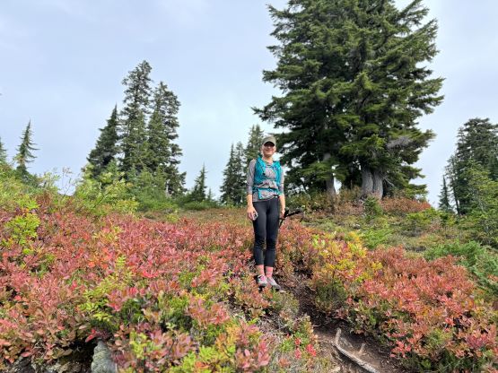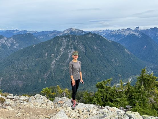 Erica on the summit in front of Middle Fork Snoqualmie River