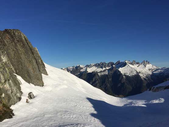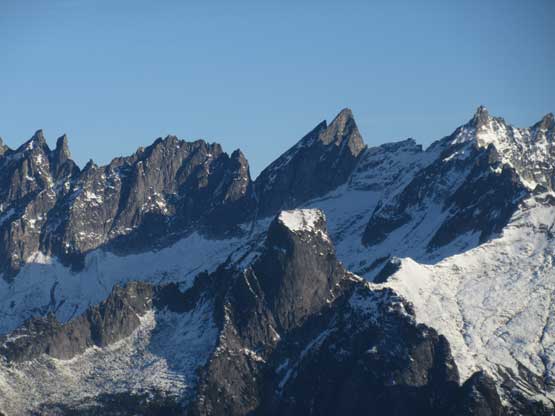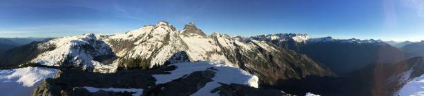 “X Mountain” is the unofficial name of the north summit of Trappers Peak not far from the small village of Newhalem and also not far from the infamous southern Picket Range. The original name of this small summit was “Cross-Dyke Peak”, named by the FA party in 1966 but was later simplified to “X” according to the Washingtonian peak-bagging legend John Roper. There’s a X-shaped cross on the shear east face of this peak, if one looks for it and I assume the name came from there. To me this peak isn’t iconic, isn’t prominent (same height as Trappers Peak), isn’t difficult, and the name seemed too unofficial for my like, so the reason I went, and claimed this as a separate summit is because of the views. The summit of “X” offers arguably better view than from Trappers Peak, especially that the east face of Mt. Triumph is completely unobstructed from this vantage point.