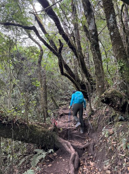 Volcán Atitlán is a harder one among the six “ultra prominent peaks” in Guatemala, that even the easiest route involves over 1700 m elevation gain. This shorter route ascends from the west side a few kilometers to the south of Santiago Atitlán. I got the “beta” from reading Craig Barlow’s trip report and I was anticipating a hefty day of work on some rough, not-so-often-used and jungle-like trails with tree roots and mud, but the reality was the exact opposite. This is actually considered the “standard route” among the locals that even on a Monday we encountered two other groups, with one from Vancouver, Canada. The trail quality was beyond my expectation with signs and well-engineered switchbacks, and the day turned out to be much easier than suggested by the stats.